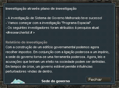 Diplomacia - Requer o Edificio "Sede do Governo" para ser habilitado. Local com a finalidade de entrar ou criar um Imperio, e posteriomente ja estando em um, acessa-lo e administra-lo.