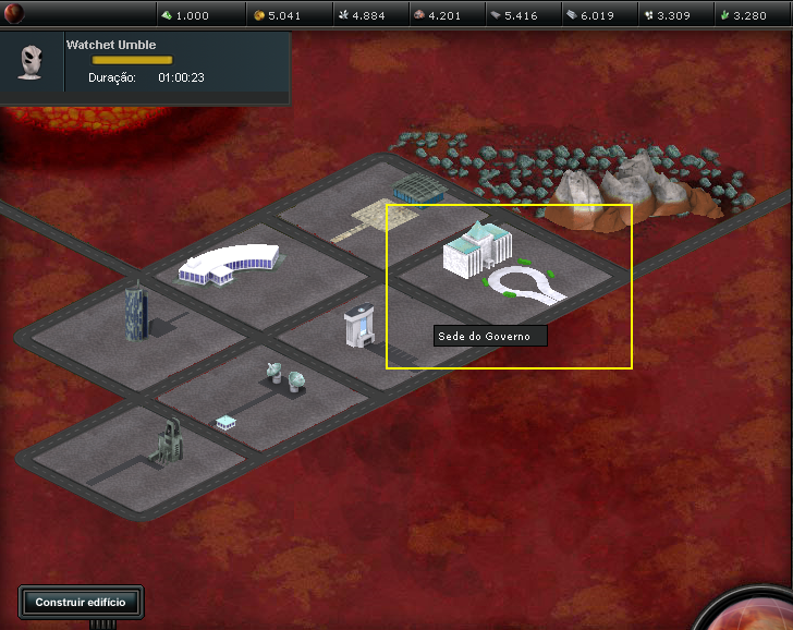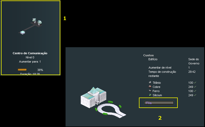 1 - Edifício disponível para construção. Basta clicar que abrirá uma janela com alguns dados e confirmação.