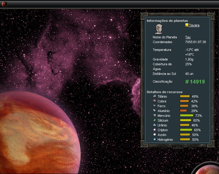 3 - Coordenada do seu Planeta. (Jamais divulgue ela em aberto no chat, e só passe para pessoas de sua confiança)