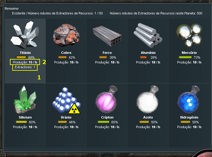 2 - Assim como a condição de aumentar o nível do Extratores de Recursos.