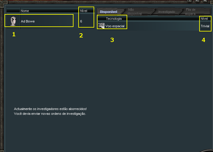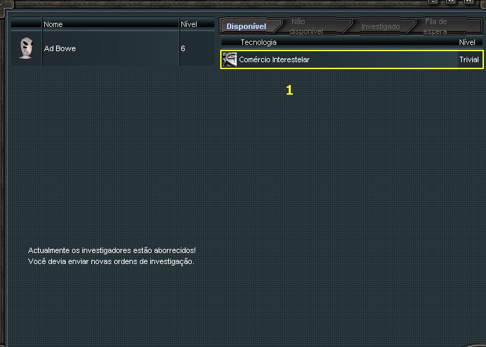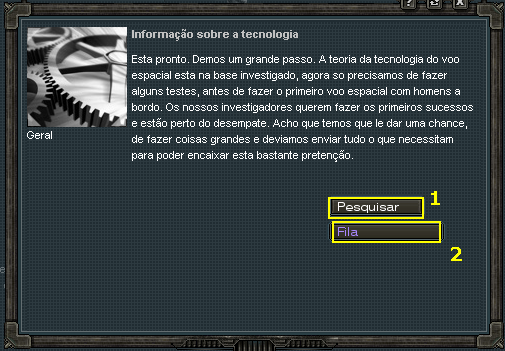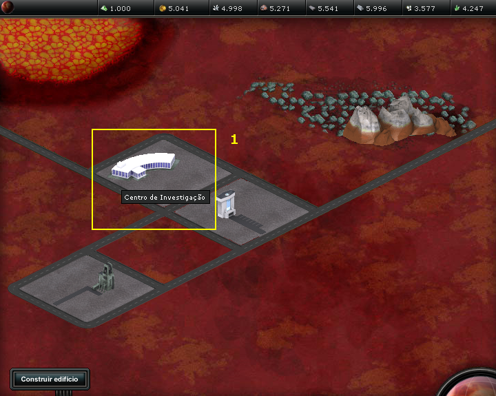 1 - Construção do Centro de Investigação, disponível. (Indicado primeiro a construção de todos os edifícios, depois para evolução dos mesmos, assim como dos Extratores).