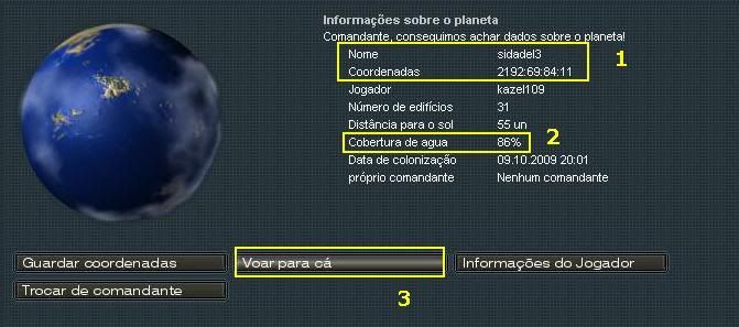 1 - Ao achar um planeta inimigo ou um que possa ser atacado, ao clicar nele, logo no informações terá o campo da coordenada completa, o nome do planeta e do nick do jogador.