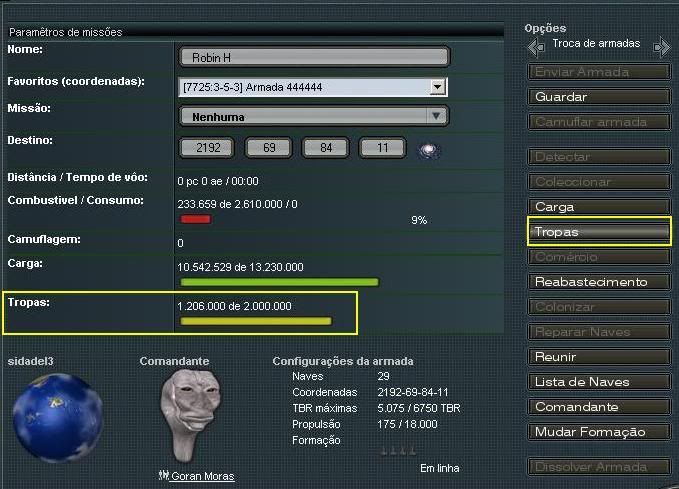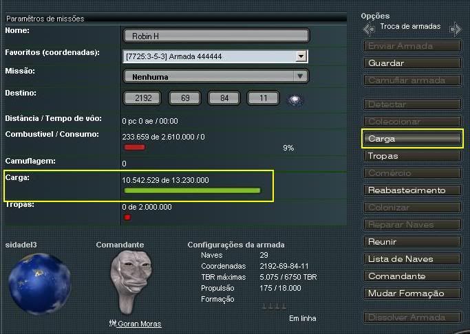 Agora vamos a parte boa da invasão. Abra sua armada, e clique  no menu CARGA