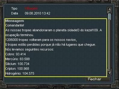 Tendo assim disponível os valores roubados. Assim como pode estar clicando no botão azul ao lado do globo, e verificando as batalhas terrestres, ficando para fins de registro, o status da batalha, a data e a coordenada inimiga.