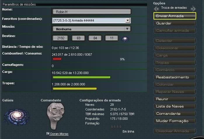 Ao abri-la, basta utilizar o comando "Enviar Armada"
