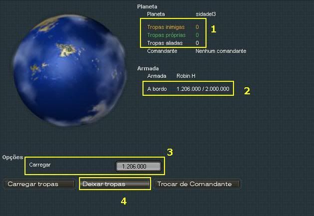 ALERTA: Ao clicar no botão Carregar ou Carregar Tudo, sua tropa será retirada do planeta imediatamente, então fica duas observações. Certifique-se que sua naves com módulos de tropas, estão juntos da armada de carga, assim como com quantidade igual ou superior a quantidade de tropa que ira voltar. Alerto, porque em alguns casos, há jogadores que separam as armadas, uma larga as tropas e depois voltam com uma de carga para pilhar, se houver apenas a de carga e clicar em carregar, ao fazer isso, a tropa que lá estava, será TOTALMENTE perdida.