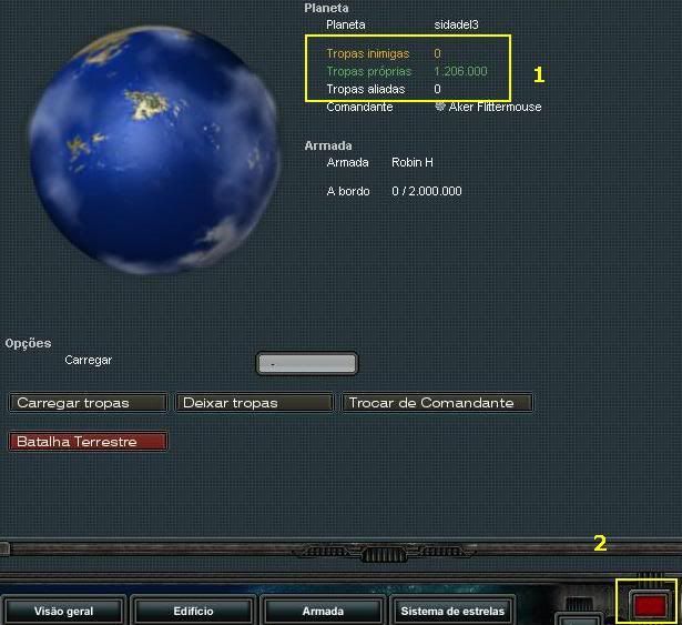 1 - Aqui constará os dados sobre tropas. No caso o "tropas inimigas" se refere a tropa do próprio defensor ou de aliados a ele. "Tropas próprias", se diz da sua tropa, e no de baixo "tropas aliadas", são as de jogadores do seu império ou de impérios aliados.